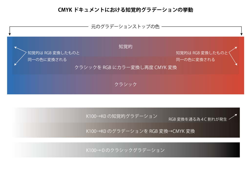 当初より「知覚的グラデーションはCMYKドキュメントでは使ってはいけない」と言っていますが、そうは言っても使ってしまうのが人の性だということで、こいつらをなんとか見つけられないかって事が当面の課題となります。
