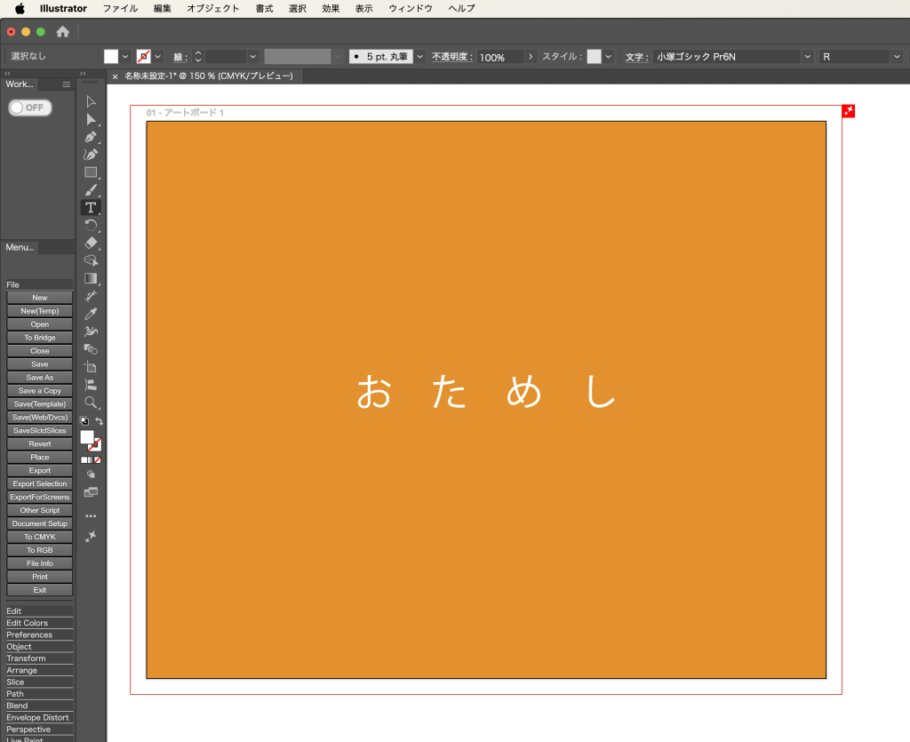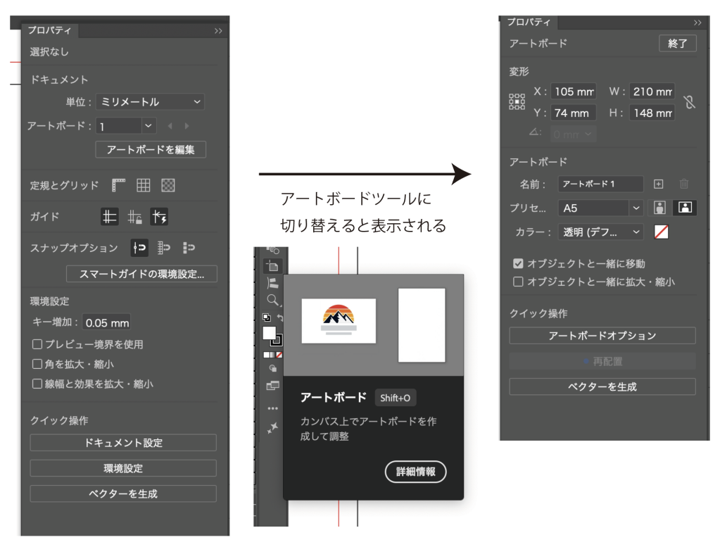 設定がちょっと面倒くさくて、アートボードツールを選択した状態でプロパティパネルで設定します。