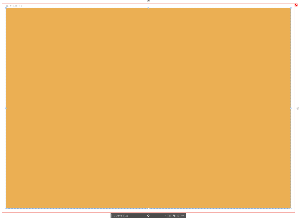 こんな感じですね。これはIllustrator上ではさわれないオブジェクトになっていて、色変更はプロパティパネルからしかできません。また、色がつく部分は表示上アートボードサイズになります。