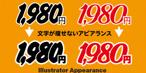2025年10月13日アピアランスでくいこみ数字-Illustrator今回はスーパーチラシでよく見かける価格表示に使う『くいこみ数字』のやり方です。アピアランス一つ作成しておけばコピペで使え... カテゴリー Illustrator